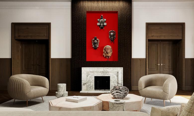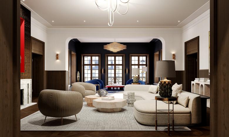 Auf rund 230.00 Quadratmetern entstand ein urbaner Rückzugsort, der den Geist der Metropole in einer ruhigen, ästhetischen Atmosphäre einfängt. Originale Stuckdecken, Fischgrätparkett und hohe Flügeltüren wurden respektvoll restauriert und treffen auf massgefertigte Einbaumöbel, feine Materialien und ein fein abgestimmtes Lichtkonzept.