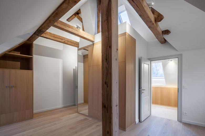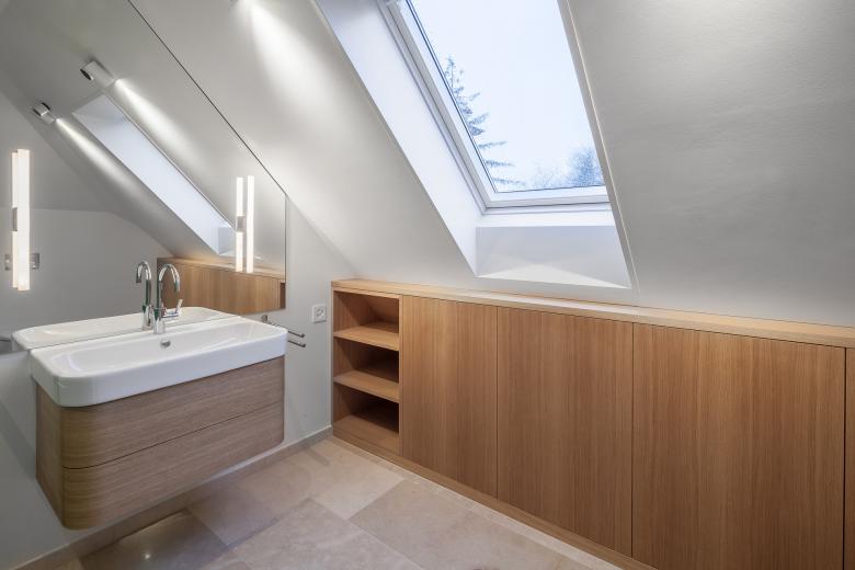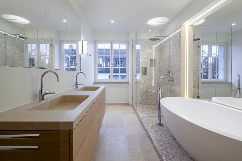 The beautifully renovated MANSARD VILLA shines afresh in a highly covetable residential area of Zurich. More volume was added to the home by raising the ceiling heights, additionally, small and single rooms were diminished to create seamless bigger spaces. The living space comprises an attic, a master bedroom including an enormous walk-in closet, supplementary bedrooms, an office and a guestroom, each with access to a private terrace. The attic equals an apartment of its own with two bedrooms, a bathroom, a playroom and separate kitchenette. The villa basement has a fitness room, home-spa, two utility rooms, plant rooms and a generous lavatory compartment. More at https://www.studioforma.ch/architecture-projects/residential/mansard-villa