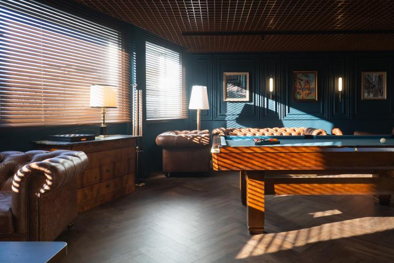 Die Formensprache ist bewusst weich und organisch gewählt, während eine reduzierte Materialpalette aus Holz, Textilien und warmem Licht eine einladende Atmosphäre erzeugt. Zonierungen aus transluzenten Elementen schaffen intime Räume, ohne die Offenheit des Gesamtkonzepts zu verlieren.