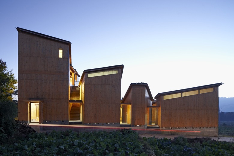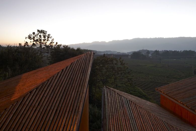 The design is aimed at making a climate responsive and environment friendly building. Local materials such as wood, bamboo, handcraft paper and volcano stone are used for exterior finish, roof, interior finish and floor respectively. With time passed, these materials will worn and fade into a more harmonious color with the landscape. The construction is to maximize the usage of local materials, technique and craftsmanship. The building combines traditional timber structural system featuring nail-less tenon (SunMao) connection and modern detailing. It was built completely by local builders.