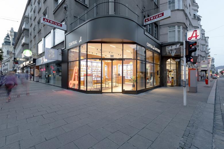 Die Ecke Landstraße/Mozartstraße ist die meistfrequentierte Kreuzung Oberösterreichs. Nachdem das Ecklokal frei wurde, hat die benachbarte Apothekerfamilie die Chance genutzt, ihre Apotheke zur Mozartkreuzung hin zu erweitern.