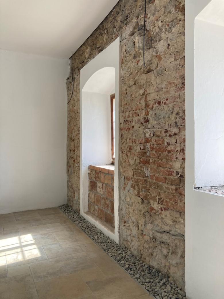 Das aufgehende Mauerwerk des Gebäudes wurde aus anstehenden Feld- und Bruchsteinen (Granit) gefügt, als Bindemittel dienten vor allem Lehm und Sand. Die Fassade ist verputzt und wird im Bereich der NW-Seite mit einer Eternitvertäfelung geschützt. Im Zuge von Sanierungsmaßnahmen infolge eines im Juni 2020 durch Hagelschlag verursachten massiven Schadens der Dacheindeckung sowie der hölzernen Dachkonstruktion erfolgte eine Erhöhung des Mauerwerks in Ziegelbauweise.