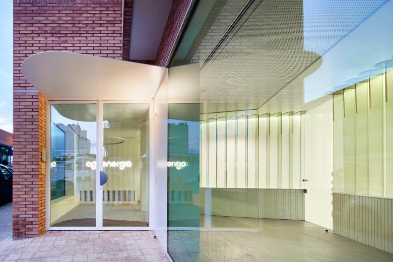 La compañía eléctrica AgriEnergia se acerca al ciudadano abriendo una oficina de atención al cliente en un local en esquina en Banyoles. Una mampara-lámpara y el cambio de ubicación del acceso articulan la intervención.