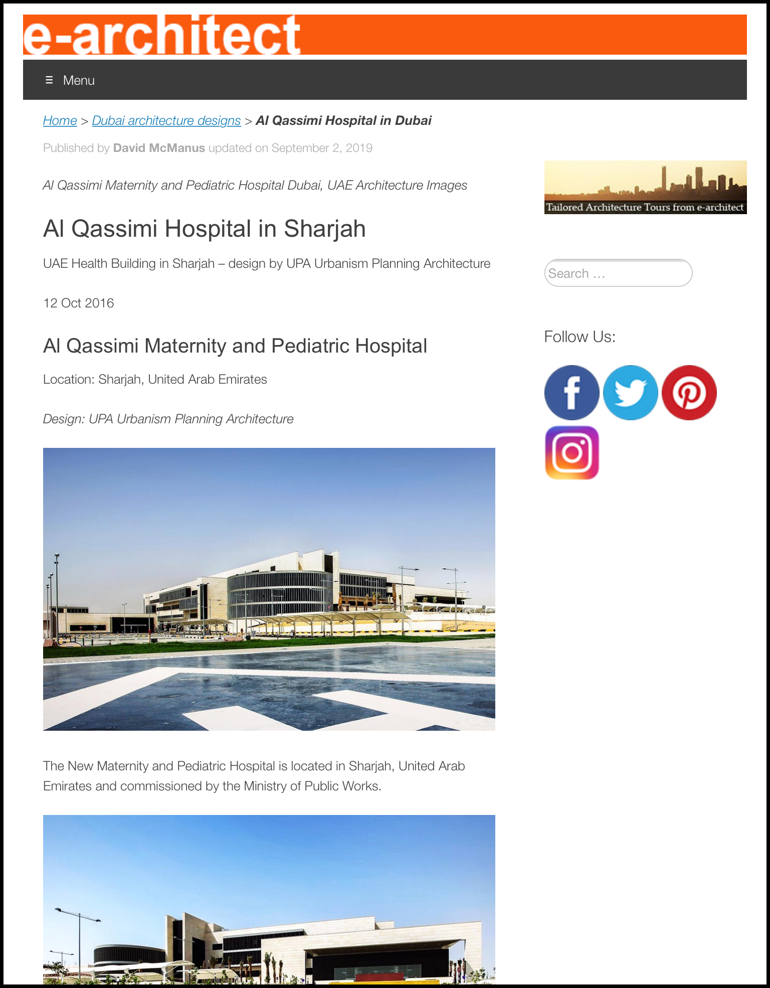 It was also decided to extend the Emergency department of the existing hospital to respond to the additional needs for better emergency services. Ministry of Public Works of UAE, that financed the project, appointed UPA Italia by Paolo Lettieri Architects and UPA as consultants for design and site supervision. The design is developed as joint venture between General Planning & UPA Italia by Paolo Lettieri Architects and UPA. UPA Italia by Paolo Lettieri Architects and UPA continued the project up to site supervision and final delivery to client. - verder lezen