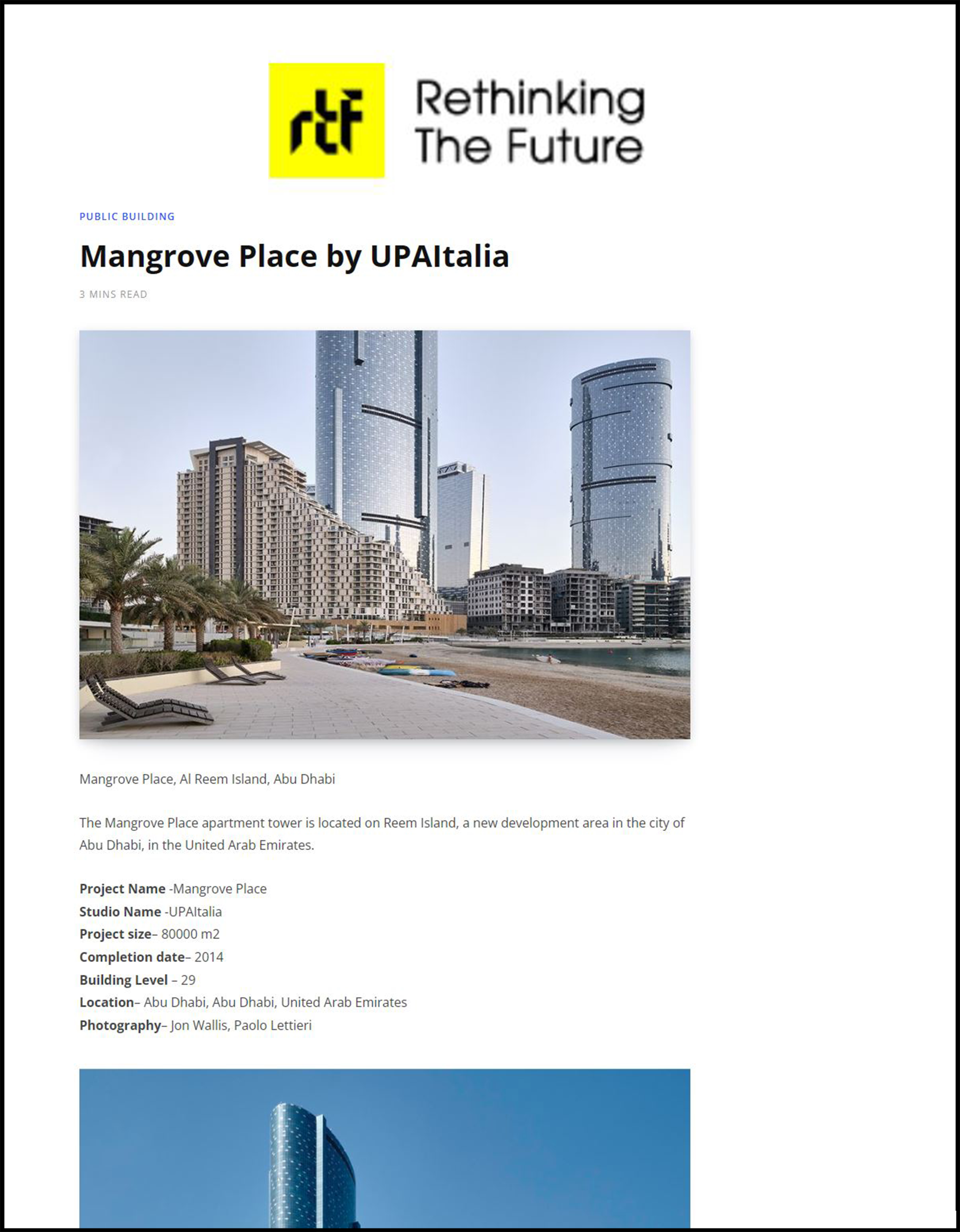 - Mangrove Place, a residential tower in Abu Dhabi, United Arab Emirates by UPA Italia by Paolo Lettieri Architects