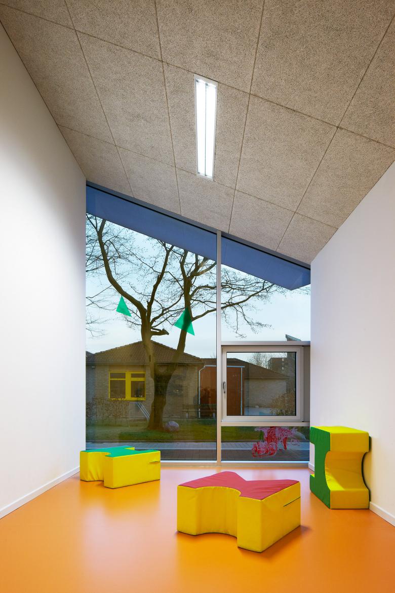 Das Berliner Viertel in Monheim befindet sich im Umbruch. Mit einem Bündel von sozialen und baulichen Maßnahmen will die Stadt Monheim dem einstigen Vorzeigeprojekt nordrheinwestfälischer Großsiedlungsbauten neue Impulse verleihen. Der Neubau der Blauen Kita markiert einen solchen Ort des Wandels im Grau der Peripherie. Durch einen aufs wesentliche reduzierten Entwurf konnte statt der ursprünglich geplanten Container ein sehr kostengünstiges, aber dennoch attraktives