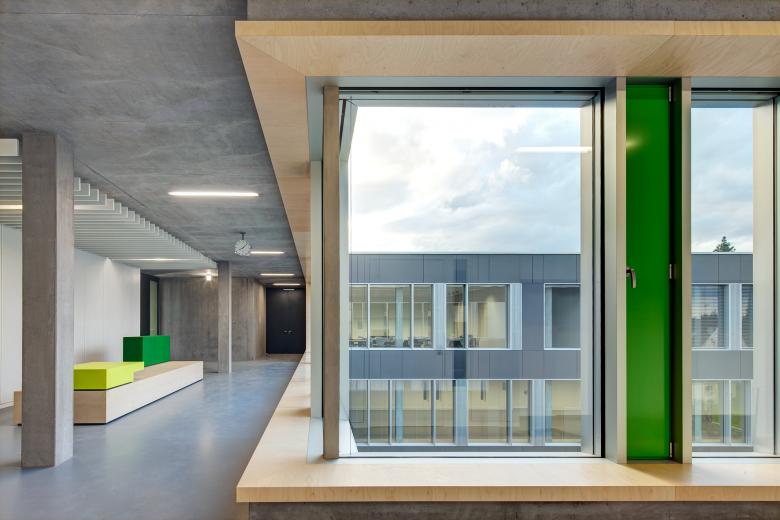 Die Kennwerte für Heiz- und Primärenergie entsprechen Passivhausstandard. Die Baumaßnahmen erfolgten parallel zum laufenden Schulbetrieb.