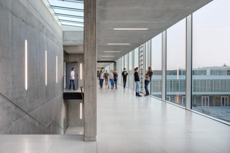 Die Stadt Oberursel hat sich für eine Weiterentwicklung des innerstädtischen Standortes des zukünftig 7-zügigen Gymnasiums entschieden. Die besondere Herausforderung des Projekts bestand darin, das relativ große Bauvolumen auf einem knappen Grundstück in den städtebaulichen Kontext zu integrieren. Die Erweiterung umfasst 3 U-förmige Klassenhäuser, einen langgestreckten Riegel mit naturwissenschaftlichen Fachklassen, eine unterirdische 3-fach-Sporthalle, Ganztagsräume, eine Tiefgarage für 120 Stellplätze sowie eine Aula mit Mensanutzung für bis zu 1.700 Schüler.