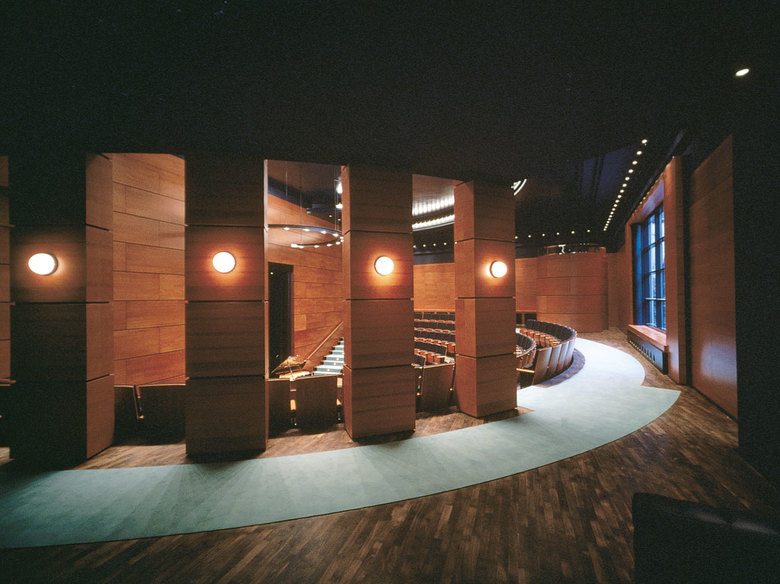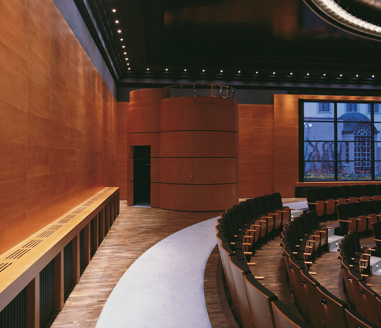 Der Wunsch in unmittelbarer Nähe des Geburtshauses des Komponisten einen Kammermusiksaal zu errichten, war Anlass für dieses Projekt. Das Vorderhaus, welches das Volumen und die Traufhöhe der einstigen Bebauung aufnimmt, beherbergt die Sammlung der Stiftung, ihre Verwaltung, Archivräume und Bibliothek. Der Kammermusiksaal mit 199 Sitzplätzen nimmt den Raum des einstigen Hinterhofes ein. Der Weg in den Konzertsaal - das eigentliche Zentrum des Gebäudes - führt durch das Vorderhaus: Von der Bonngasse kommend, gelangt man in ein Entree, das sich konisch zum dahinter liegenden Foyer mit der Garderobe weitet. Durch eine Flügeltür erschließt sich eine umlaufende Galerie und mit ihr der Blick durch einen Arkadenviertelkreis auf die Bühne des Kammermusiksaals.