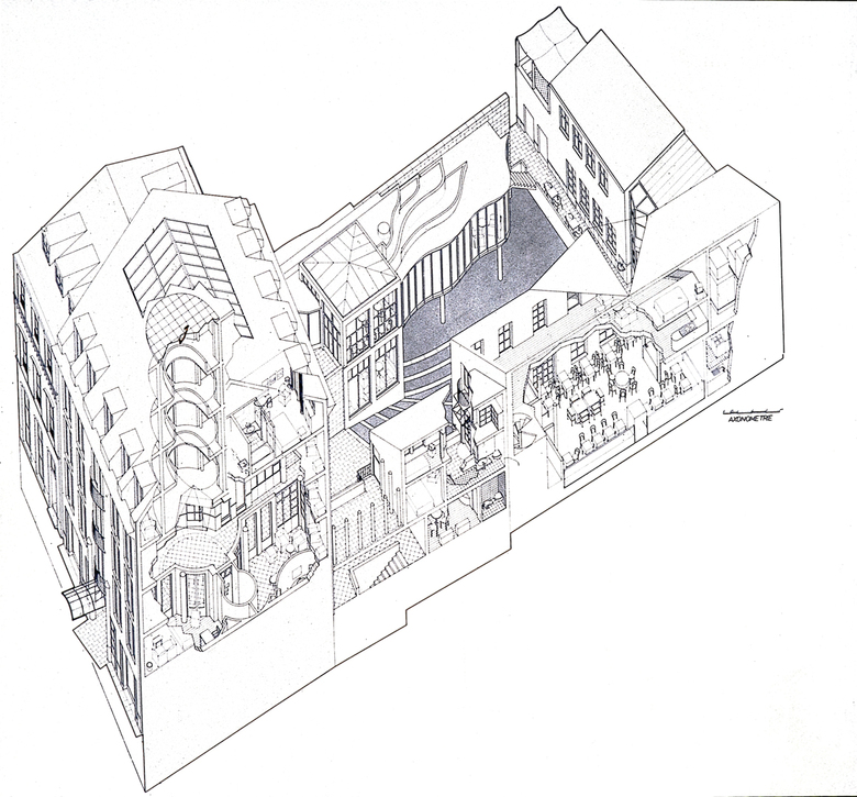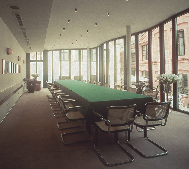 Aus desolaten Altbauten in einem Hinterhof mit Gewerbebetrieben und einem spätklassizistischen Vorderhaus sollte ein Ensemble mit urbanem Ambiente und neuer Nutzung entstehen. Das Ziel war ein Stück Stadtsanierung und Erhaltung durch den Bau eines Hotels, Gastronomie und unterschiedlicher Geschäfte. Gereizt hat der Standort, die Lage in einer ruhigen Seitenstraße zwischen Hauptbahnhof und Stadthaus, die Situation "neues Bauen in alter Umgebung", die Möglichkeit der Verwendung alter Bausubstanz verschiedener Stilepochen in einem neuen Zusammenhang mit neuer Funktion.