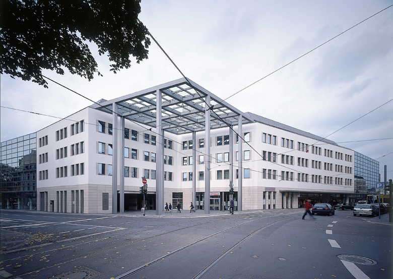 Ausgehend von der städtebaulich vorgegebenen Dreiecksfigur des Berliner Platzes entstand ein neues Gebäude zwischen Sterntorhaus und Stadthaus. Zentrum des neuen Baukörpers ist eine rautenförmige Loggia welche als Entree sowohl zum Neubau, wie zum Stadthaus fungiert.