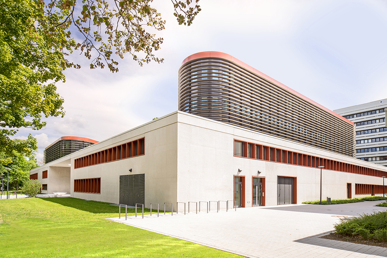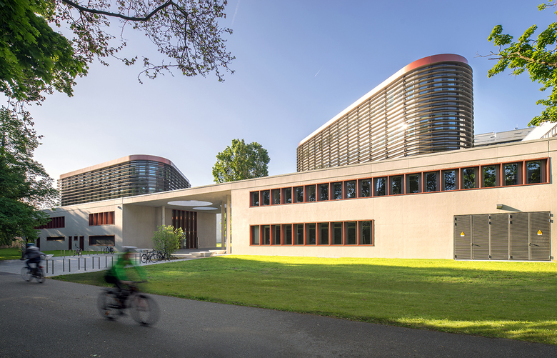 Das Grundstück für die Neubauten liegt an einer städtebaulich und freiräumlich wichtigen und sensiblen Stelle des Campus. Im Norden grenzt es an die Richard Willstätter Allee, eine der Hauptachsen des fächerförmigen Stadtgrundrisses am Übergang zum ehemaligen Fasanengarten an.