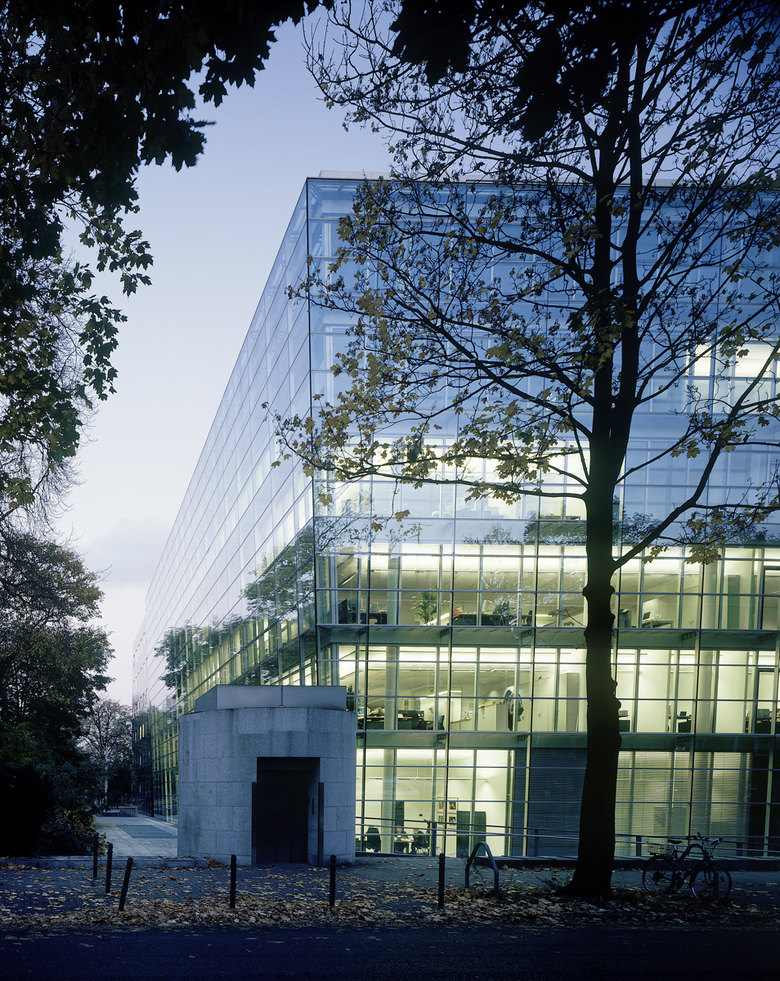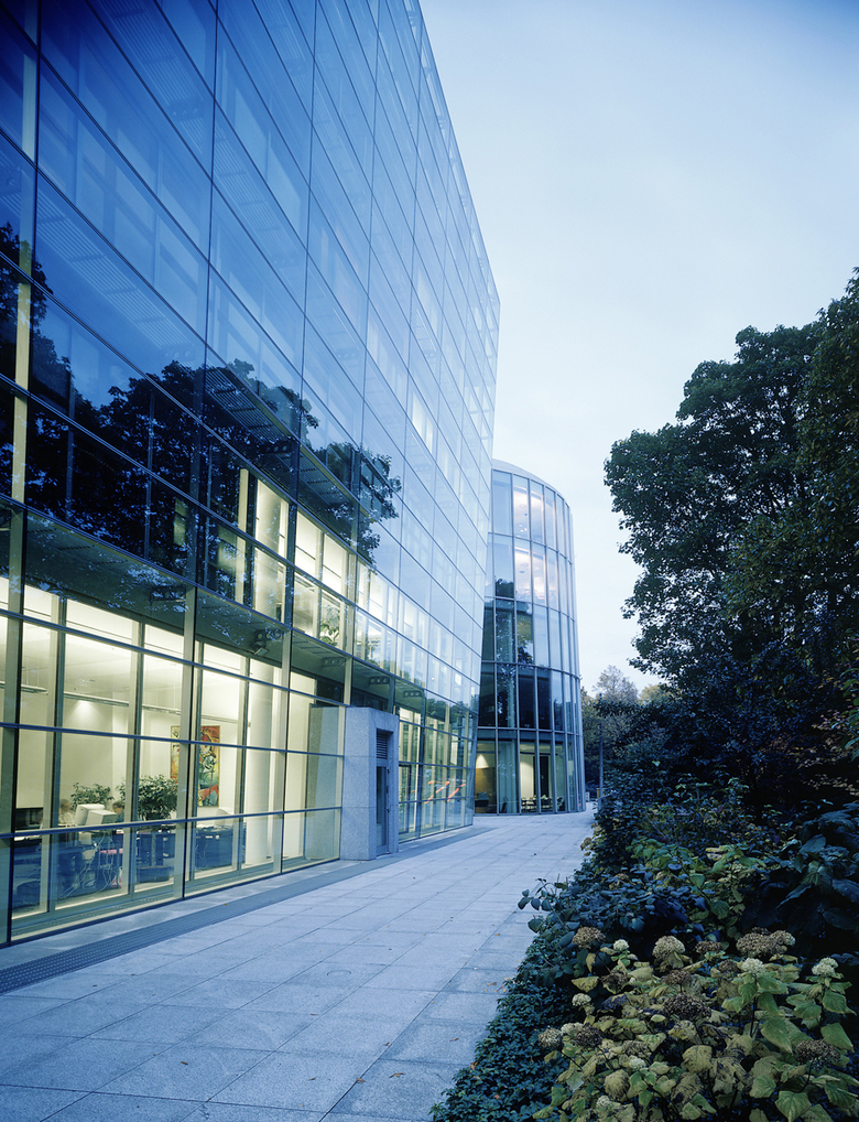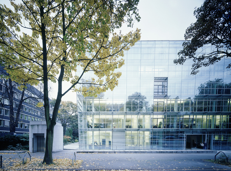 Dreiteiliger Bürokomplex am Kölner Stadtring, dessen reine und skulpturale Formen den Dialog mit der angrenzenden Bebauung der 50er Jahre aufnehmen. Eine thermische Simulation ermöglichte die Optimierung aller Teile der Konvektionsfassade. Trotz weitgehender Transparenz der Verglasungsebenen konnte ein g-Wert von weniger als 0,1 erreicht werden.