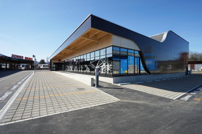 Die Bike World in Schlieren wird bewusst als Ergänzungsbau zur Migros Schlieren Limmattal gelesen. Im Bike World wird Formensprache und Materialisierung des Hauptbaus übernommen. Dadurch wird ein gestalterisches Ensemble gebildet in einer sonst heterogenen Industriezone. Der Neubau der Bike World nimmt die runde Formensprache auch in der vertikalen auf und verpasst ihr eine prägnante und zum Fahrrad passende Form.