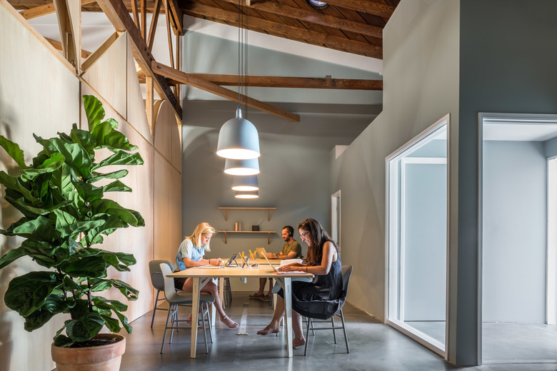 Nos encontramos con un espacio diáfano de 2100 pies cuadrados (196m2) en el que el gran protagonista son una grandes cerchas de madera que delimitan el espacio transversalmente.