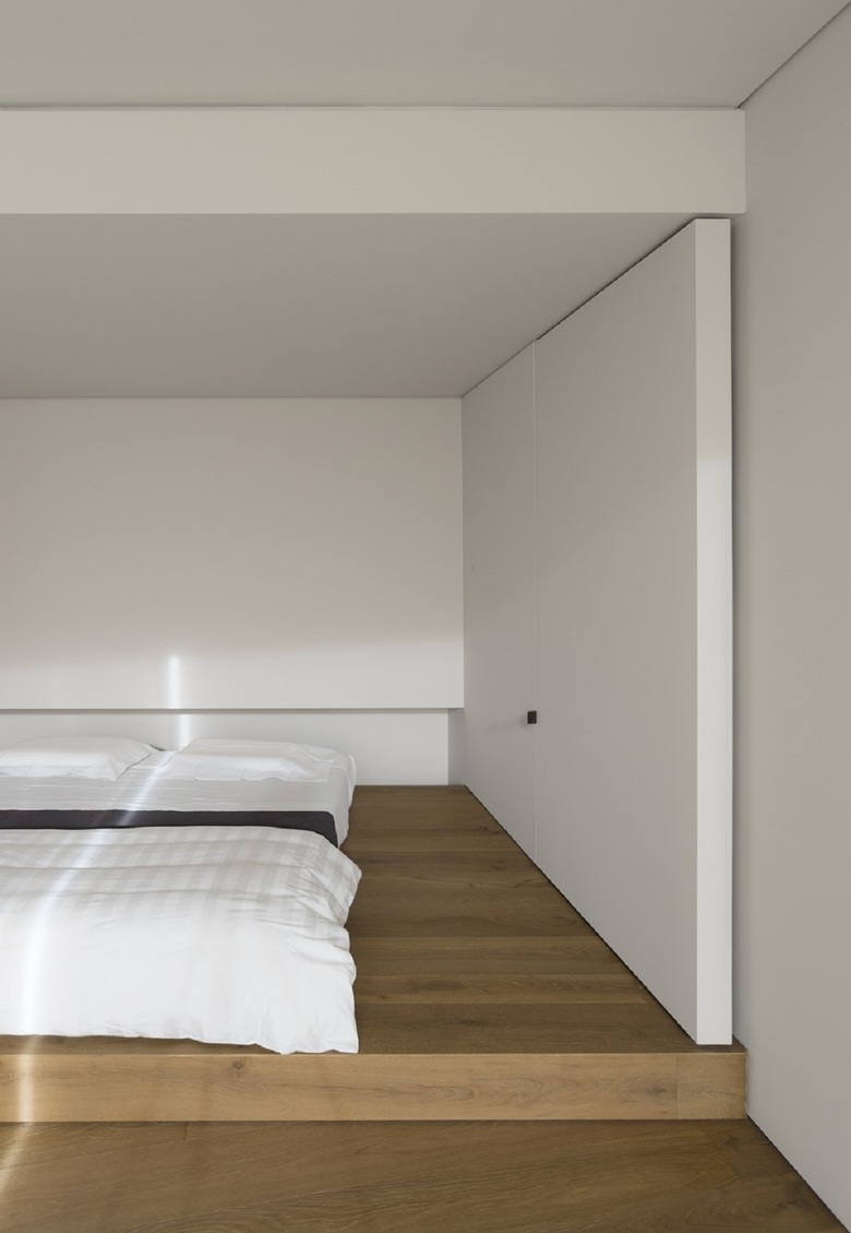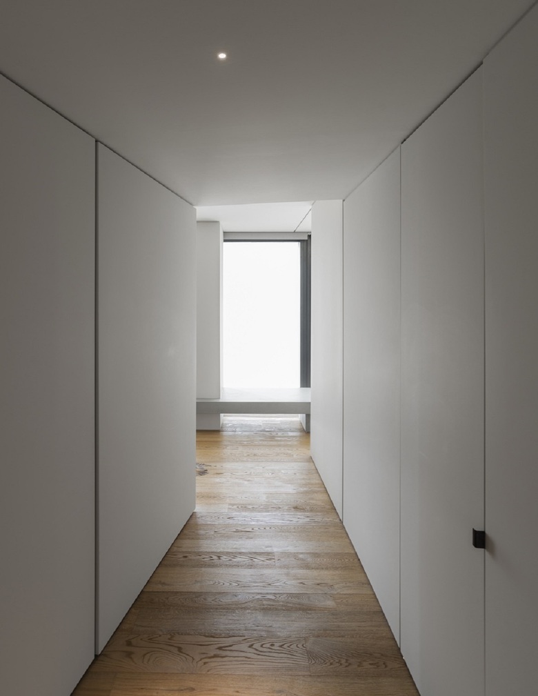 Ne consegue uno spazio fluido, continuo, senza interruzioni. I confini non sono definiti, gli spazi si trasformano seguendo i momenti ritmati della giornata. Grandi pannelli scorrevoli a tutt'altezza modulano stanze ideali, creano fessure di compagnia, di luce, di curiosità e quindi di gioco dinamico. Non volevamo dover far "chiudere una porta" per potersi isolare.
