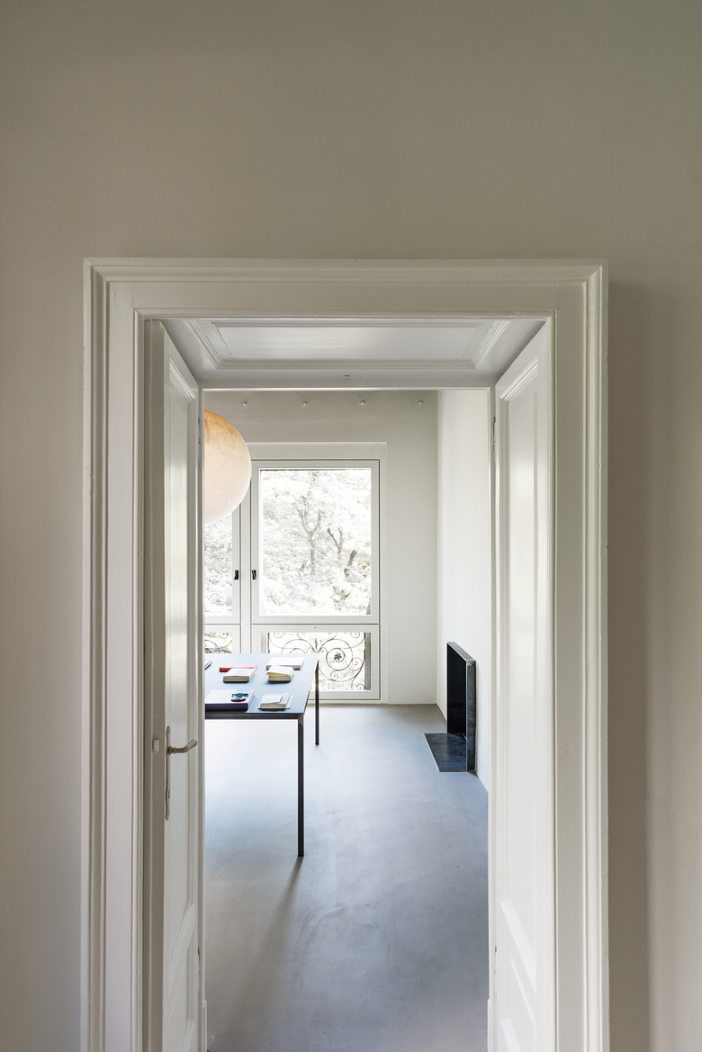 La pianta è governata da chiari assi lungitudinali e trasversali che attraversano le stanze fino a perdersi oltre le aperture nel verde dei giardini circostanti.