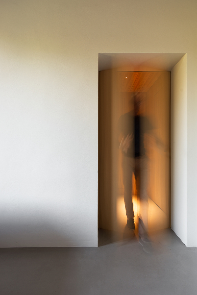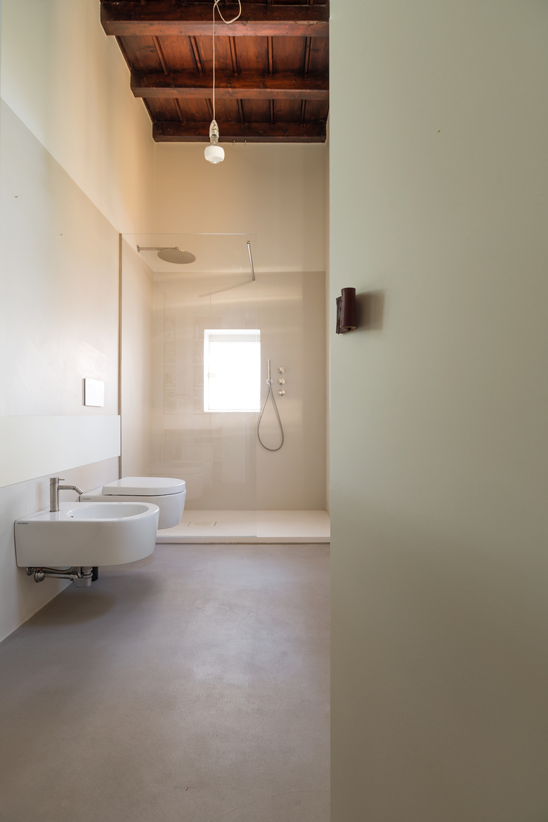 Una superficie continua che ci accompagna in tutti gli ambienti dialogando in modo complementare con il soffitto in legno.