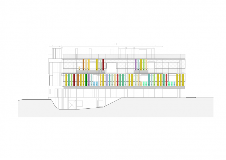 Rainwater from the roof is collected in an underground cistern and feeds the automatic irrigation system for the plants on the façade and the garden. Together with the 1,215 new plants in the open space consisting of 73 local species, the green façade also contributes to local biodiversity, ensuring that the building is a good neighbor to its human and other-than-human communities.