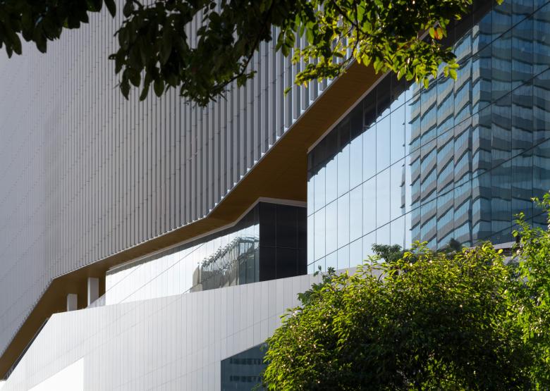 The design takes cue from Bangkok’s layered urban fabric, with a massing that responds to local climate conditions through iterative environmental wind and solar engineering. In contrast to the city’s ubiquitous vertical towers, the 250,000 m² development was conceived as an architecture of horizontality, blurring the boundaries between architecture and urbanism. Its diverse programs are organized around an open-air courtyard – the social and climatic heart of the project. Nestled between the tower and podium, the elevated courtyard serves as an innovative response to Bangkok’s flood-prone, heat-intense climate, providing passive shading and natural ventilation.
