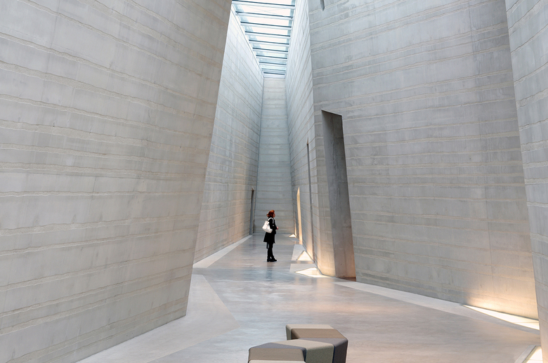 Throughout the museum, the visitor experience sequences a balance of stark differences in atmospheres, light and intensities – from the enclosed exhibition spaces ensconced in the hill, to the light-filled lobby and transition spaces. The juxtaposition between descent and ascent, inside and outside, earth and sky, or nature and art, evoke the analogous experience of the caves.