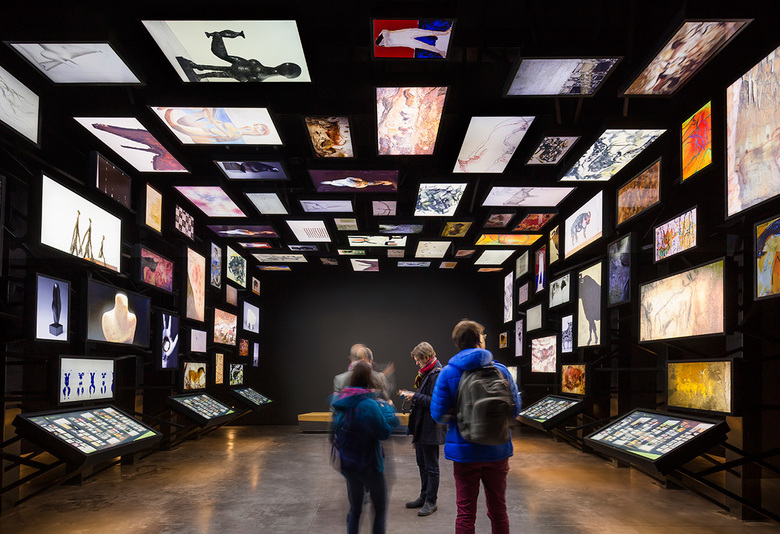 The interpretive center that follows provides interactive exhibitions to teach the rich history of the Vézère Valley and cave paintings. Casson Mann’s installations are enhanced by digital learning experiences, employing new technological devices and interactive screens to offer the findings of the most recent research from expert pre-historians and archaeologists.