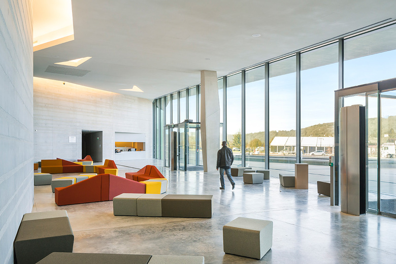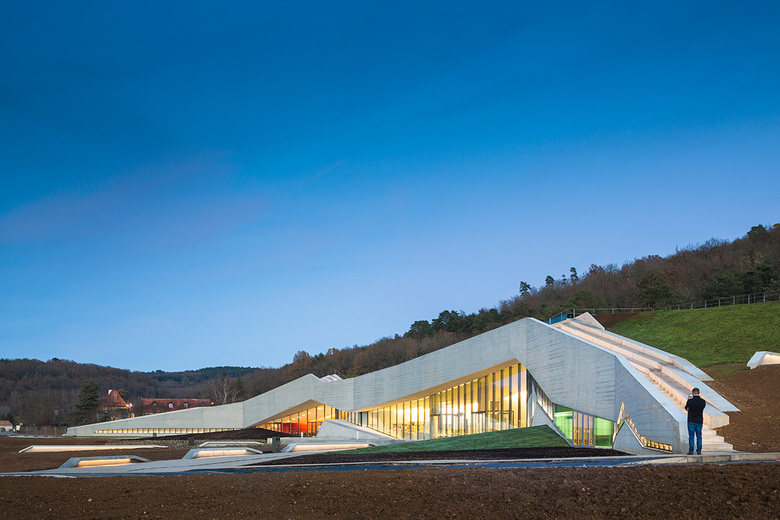 The new Lascaux IV Caves Museum is situated at the intersection of two unique landscapes, between a densely-forested, protected hillside and the agricultural Vézère Valley. Snøhetta’s design conceives the museum as a fine cut in the landscape, inviting visitors into a curious world of prehistory. By framing the experience of the cave replica in contemporary design, the approach counters the potential trap of artifice: the materiality and geometry of the approach allows the visitor to understand that they are in the presence of a reproduction, without distracting from the power of its impact. The form and materiality of the museum have a monolithic, sober expression, speaking to the surrounding nature and the massive rock formations embedded in the hill, with a new public, agricultural landscape unfolding around it.