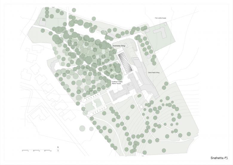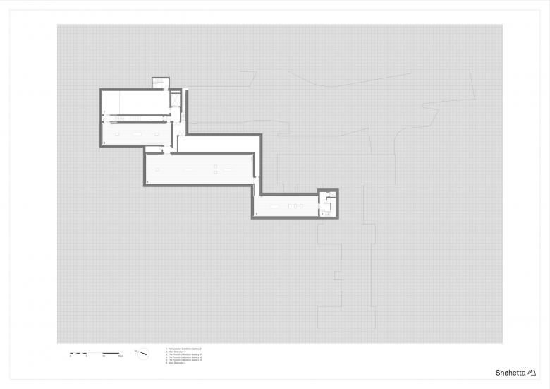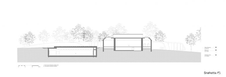 Situated near Jægersborg Dyrehave, north of Copenhagen, Ordrupgaard houses Northern Europe’s most comprehensive collection of French and Danish art from the 19th and early 20th century. Originally built as a three-winged country mansion in the neo-classical style during World War I, the museum was expanded by a modern 1,150 m2 glass and black lava concrete extension in 2005, designed by Zaha Hadid. Snøhetta’s design, most of which is underground, but also partly excavated from the landscape, creates a holistic and continuous path throughout the entire museum and its surrounding park and gardens, linking Hadid’s extension for special exhibitions with the museum’s original building and permanent collection. In total, Snøhetta’s design comprises landscape interventions as well as five brand new, subterranean exhibition spaces, two of which create a continuation of Hadid’s exhibition space, and three specially dedicated to one of the museum’s main attractions: its extensive and permanent collection of French impressionistic paintings.
