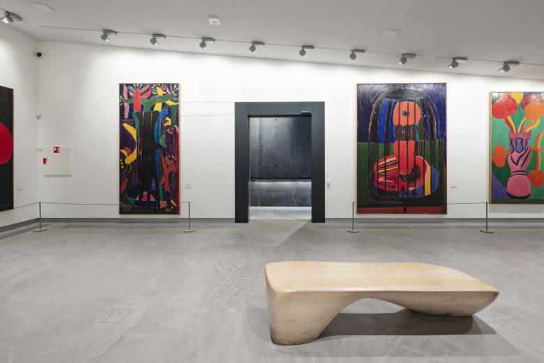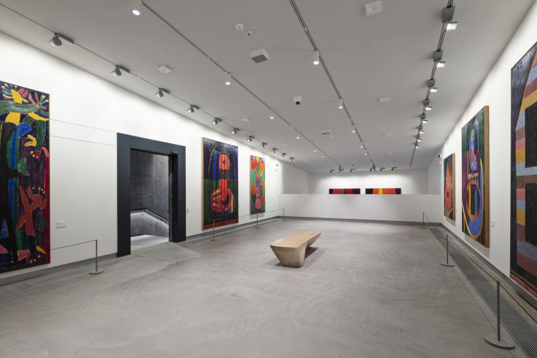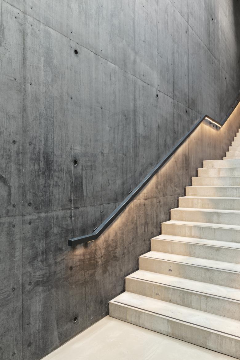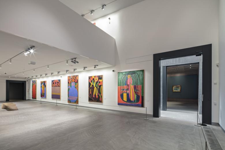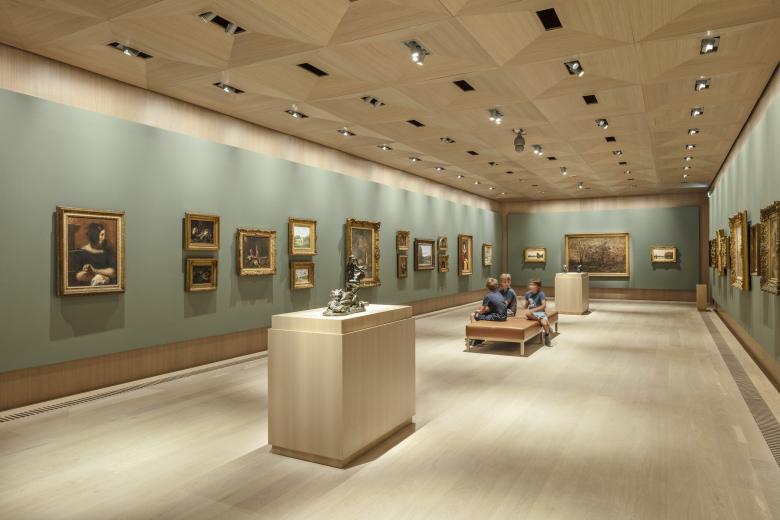 Whereas the two exhibition spaces expanding the 2005 building mark a continuation of the dark concrete materiality palette characteristic for Hadid’s design, the additional exhibition spaces dedicated to the museum’s impressionistic art are made up of two smaller and one larger space in a much lighter color and material palette. The spaces are designed in close collaboration with the museum and are all furnished with oak floors, walls, and ceilings, providing a light, organic and warm atmosphere. Gypsum boards are mounted on the walls allowing for the museum to effortlessly curate art pieces and change the color palette of each exhibition room when needed. The exhibition ceilings are covered with oak veneer cassettes with carefully integrated light installations, providing a seamless and harmonious design that places the art pieces at the center of attention.