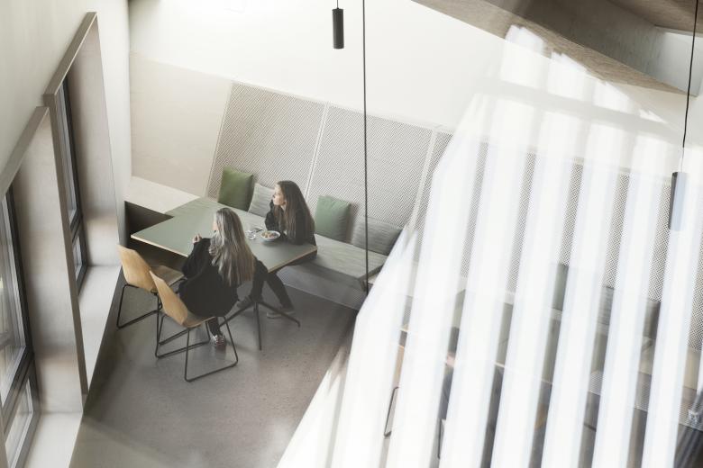 To reduce the need for artificial lighting to an absolute minimum, the building has a conservative but efficient lighting system. The building’s roof also features vertical glass slots, allowing for daylight penetration on the three top floors. Moreover, the choice of loose furniture with light surfaces allow for a subtle complement of the interior lighting.