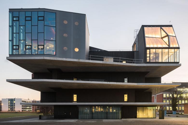 Das als Forschungs- und Innovationsplattform konzipierte Gebäude gliedert sich in ein infrastrukturelles Bauwerk sowie die daran angegliederten experimentellen Büro- und Wohnmodule. Um das im Zentrum des permanenten Gebäudeteils liegende Atrium gliedern sich die allgemeinen Nutzungen an. Die Beleuchtung ist in die abgehängte offene Ringdecke integriert und erlaubt eine diffuse Allgemeinbeleuchtung die hinter der Struktur angeordnet ist und eine gerichtete Akzentbeleuchtung, die in die Struktur eingehängt ist. Im Atrium und der Erschliessung bildet die Beleuchtung eine formale Einheit mit der Architektur.