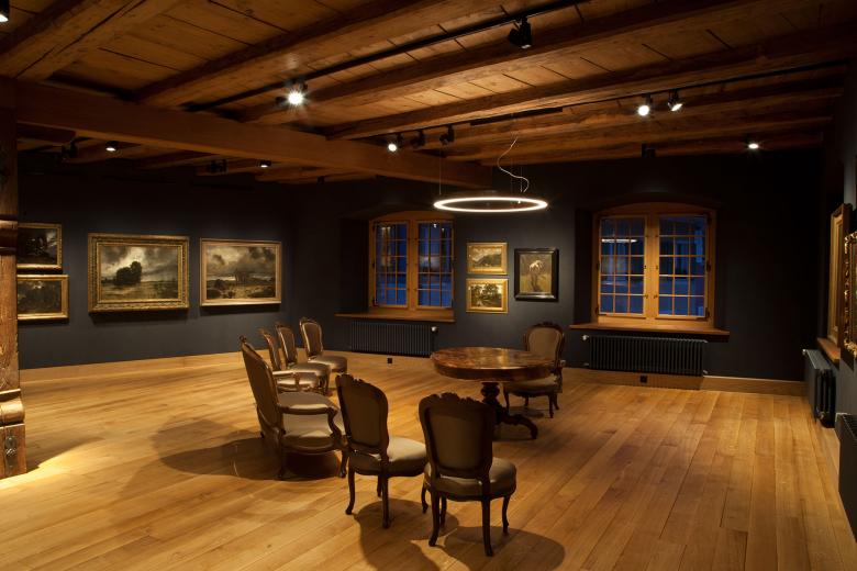 Die Beleuchtung des nach dem schweizer Maler Adolf Stäbli benannten Stäblisaales im 1. Obergeschoss erfüllt zwei Funktionen: Die Beleuchtung der Bilder sowie die Beleuchtung des Saals für Veranstaltungen, insbesondere Trauungen. Mit den auf Stromschienen montierten Strahlern wird sowohl die an den Rückwänden konzentrierte Ausstellung als auch die Raumbeleuchtung gelöst. Eine abgependelte Ringleuchte bildet den Rahmen für die Trauungen.