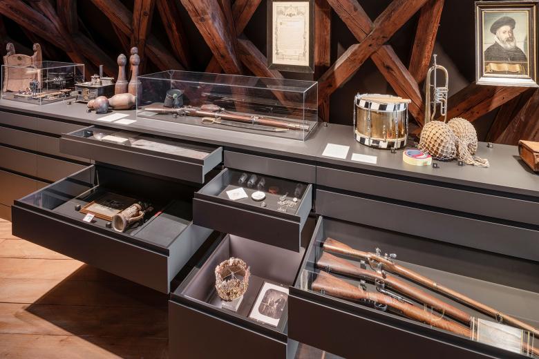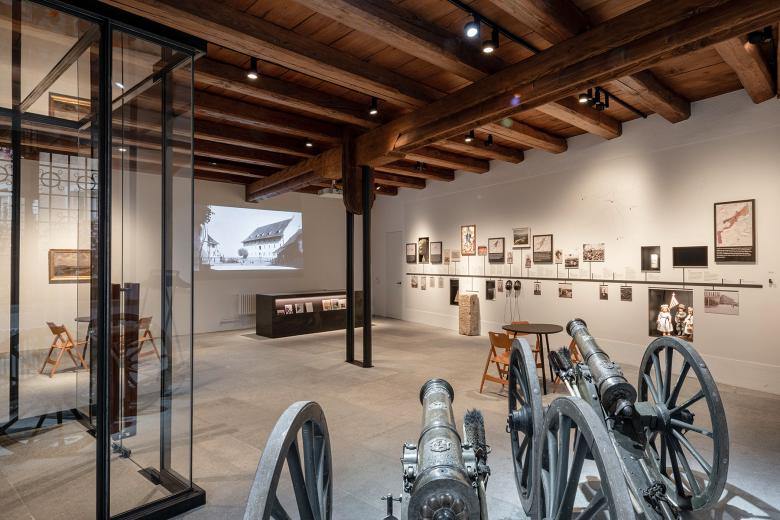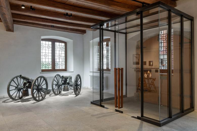 Der ehemaligen Waffensaal im Erdgeschoss wird heute als multifunktionaler Raum genutzt. Das Prunkstück des Raumes bilden die Jugendfestkanonen, daneben zeigt der Zeitstrahl die Geschichte von Brugg. Der Saal im 2. Obergeschoss wird durch die hölzerne Dachkonstruktion geprägt. Die Ausstellungsobjekte werden seitlich präsentiert, so dass der Raum erlebbar bleibt.