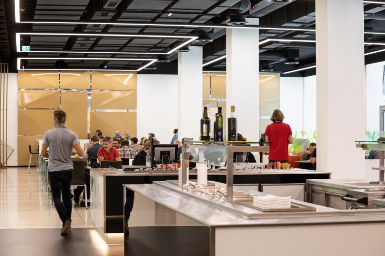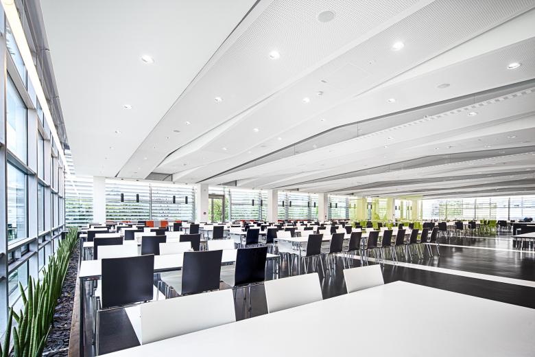 Der bestehende Speisesaal wurde analysiert und in einen modernen Speisesaal mit Free Flow Restaurant inkl. Grillcorner entwickelt und somit optimalen Funktiionsabläufe und verbesserten Speisenangebot. Die hohen Räume und die Konstruktion wurden hervorgehoben und mit einer zusätzliche Galerie erweitert und die Innenraumgestalltung aufgewertet.