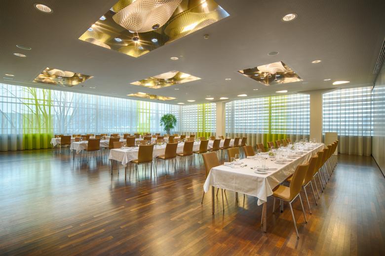 Im Bereich des 1.Obergeschoss (=Speisesaal) und im 2.Obergeschoss (=Küche Gästehaus) erfolgen Sanierungen und Umbauten im Innenbereich. Mit der Klimahülle können auch bei extremen Kälteperioden die Bereiche nahe an der Glasfassade genutzt werden, die eine zeitgemässe und attraktive Gestaltung dieser Zonen ermöglicht.