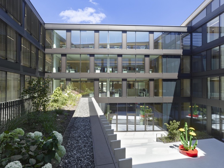 Am Residenzplatz in Kempten, im Anschluss an die historischen „langen Stände“, errichtet die Sparkasse ihre neue Hauptstelle. Der sensible Übergang zum Stadtgarten und die Integration von Teilen des Weidlehauses erfordern eine präzise Setzung des Baukörpers. Um einen Innenhof herum entsteht ein kompakter Verwaltungsbau, der zum Residenzplatz viergeschossig und zum Stadtgarten fünfgeschossig ausgebildet wird. Im Erdgeschoss befindet sich die neue Kundenhalle. Geschosshohe, in wechselnden Breiten und Winkeln angeordnete Fassadenelemente aus Architekturbeton geben der neuen Hauptstelle Maßstäblichkeit und Eigenständigkeit im historischen Kontext.