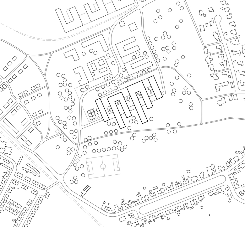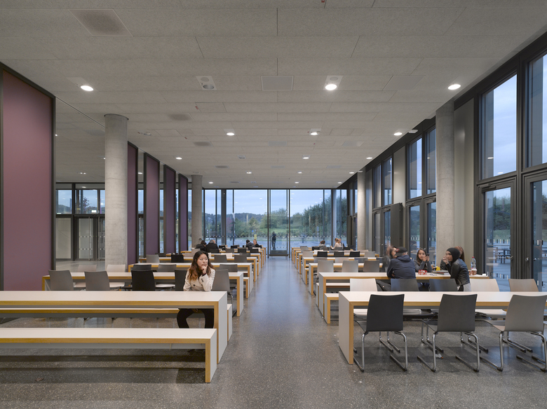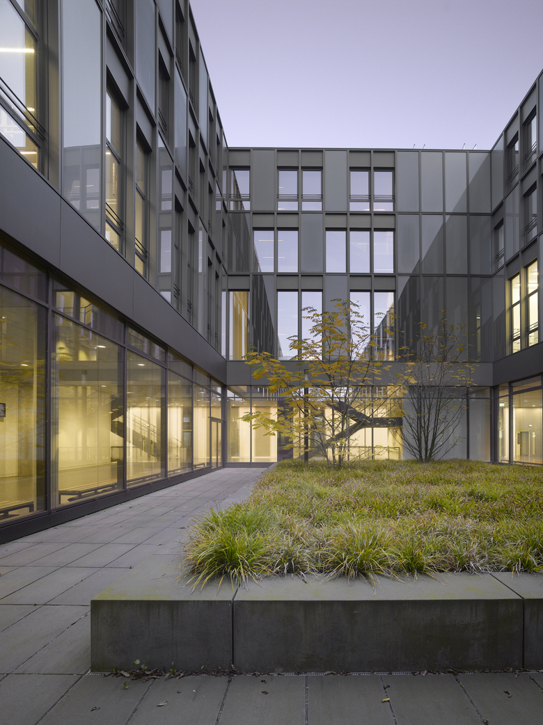 Die neue Fachhochschule befindet sich im im südlichen, der Landschaft zugewandten Bereich des Hochschulcampus Nord. Zum Campus wird eine klare Raumkante formuliert, während die Seite zur Landschaft differenziert und offen ausgebildet ist. Vom zentralen Campusplatz kommend betritt man die Eingangshalle, aus der sich die Magistrale als Haupterschließungsachse weiterentwickelt und das Erschließungskonzept des Masterplans mit seinen sogenannten „Hot spots“ fortführt. Die Fassade mit ihren pixelartigen farbigen Glasflächen entstand in Zusammenarbeit mit dem Künstler Josef Schwaiger.