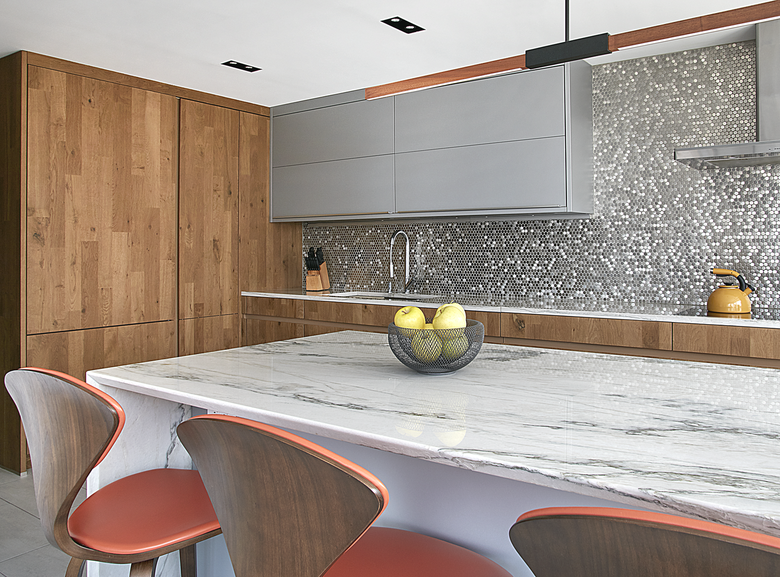 Each project deserves a daring decision. For this project, without a doubt, it was the leather walls. In the end, attention to detail, careful selection of artwork, daring use of color, and integration of material and texture, are what brings this design to life.