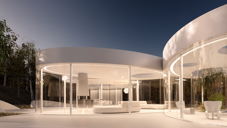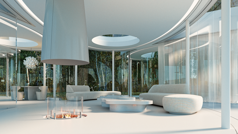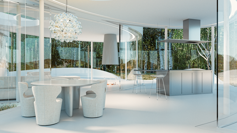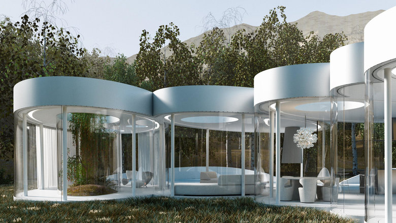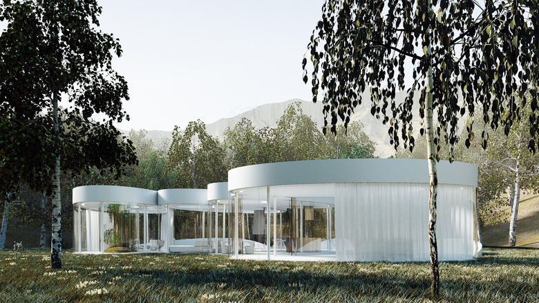 This weekend retreat, nestled in a grove of aspens in Lizard Head Pass, Colorado, embodies the words of Henri Poincaré: “Ideas rose in clouds; I felt them collide until pairs interlocked, so to speak, making a stable combination.” It directly challenges many of our ideas about home. Rather than a place offering the illusion of protection from the outside world through solid structure, its openness, light and reflectivity make it arguably more transparent than even Philip Johnson’s iconic Glass House. Featuring a floorplan that is an abstract interpretation of a cumulus cloud, the home’s five rotated, elliptically shaped glass pods approach invisibility at certain times of the year. Each pod serves a distinct programmatic function, though together they facilitate an easy and fluid flow accomplished by minimalist doors placed at the interstices where the pods meet. It functions as an ethereal meeting place between earth and sky.