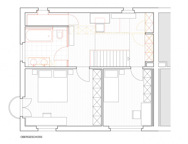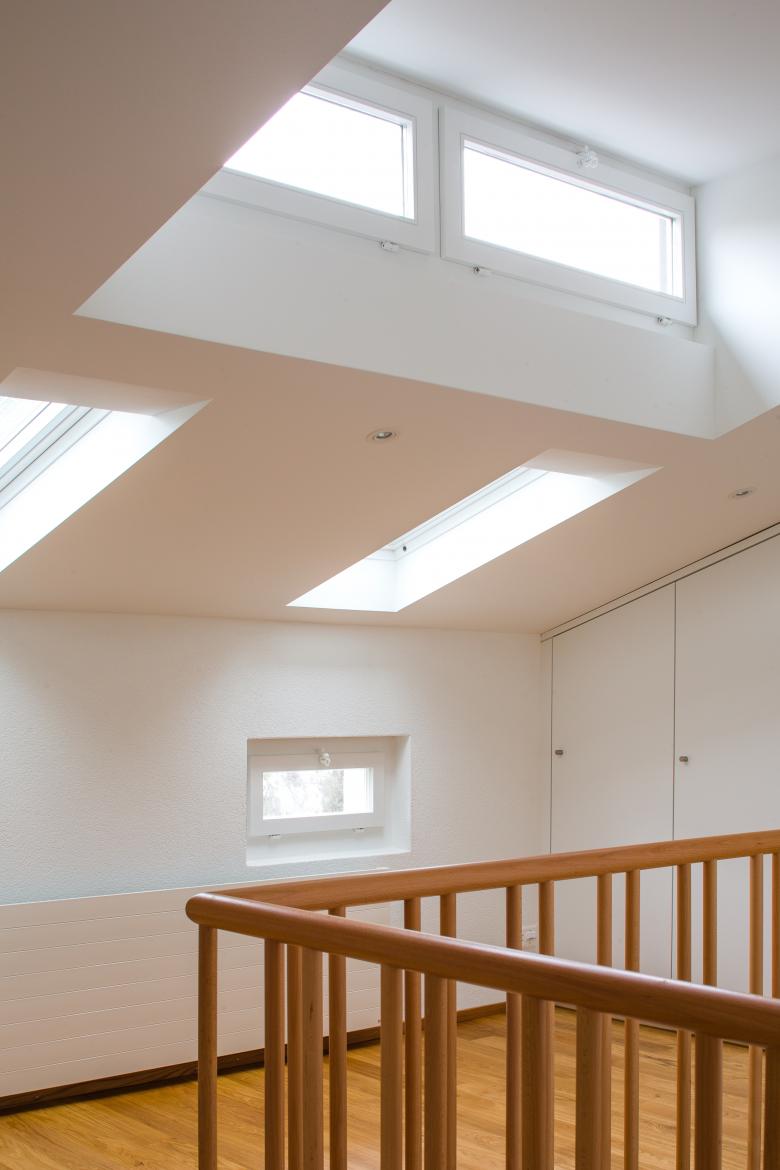 Im Obergeschoss wurde der Abstellraum aufgehoben, so dass eine grosszügige Diele entstand. Diese wird über 2 Dachflächenfenster zusätzlich belichtet.
