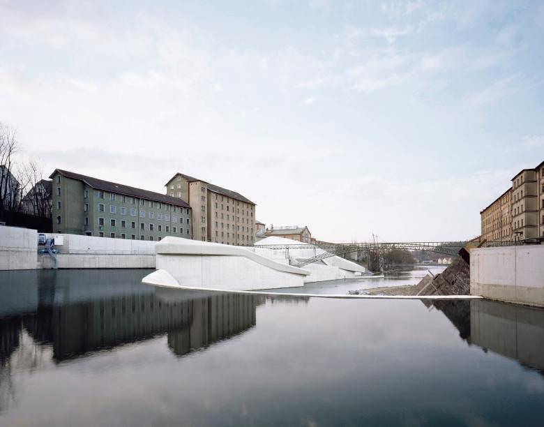 Das Bild ausgewaschener Gesteinsformationen im Fluss und die Übertragung der Wasserdynamik innerhalb des Kraftwerks in die Architektur haben die Formensprache maßgeblich bestimmt, zahlreiche Modelle halfen bei der Entwicklung, ehe die Gebäudehülle in ein 3-D - Datenmodell überführt wurde. Als Ergebnis entstand trotz der Gesamtgrösse, ein sehr differenziertes, organisches Gebilde, das sich einerseits an seine Umgebung angleicht, in seiner Ausformulierung jedoch als eigenständiges Bauwerk erfahren lässt.