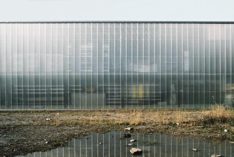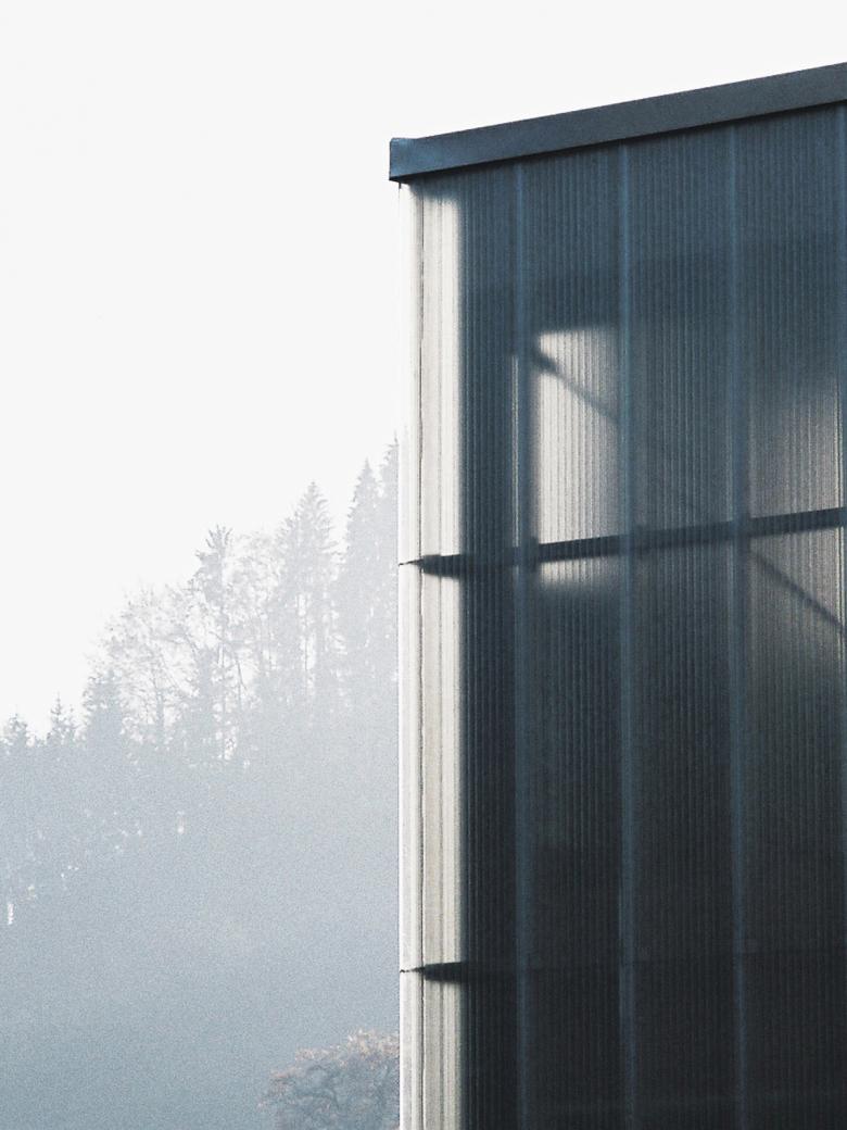 Für die neue Fertigungshalle eines Anlagenbauers stand am nördlichen Ortausgang von Blaichach ein ehemaliges Schrottplatzgelände zwischen Bundesstrasse und Bahnlinie zur Verfügung. Der behördlichen Auflage, das Grund-stück vollflächig zu versiegeln, wurde durch Asphaltieren des Untergrundes Rechnung getragen. Ein leichtes Ab-lösen vom Boden verleiht dem Baukörper einen schwebenden Charakter und sorgt im Überschwemmungsgebiet der nahen Iller für zusätzliche Sicherheit.