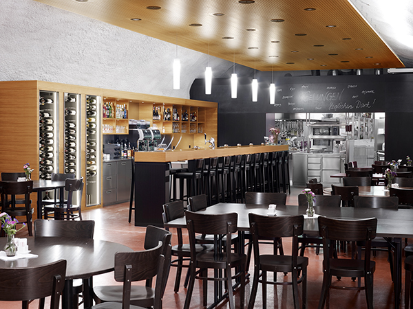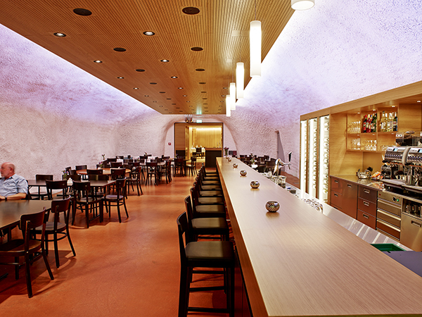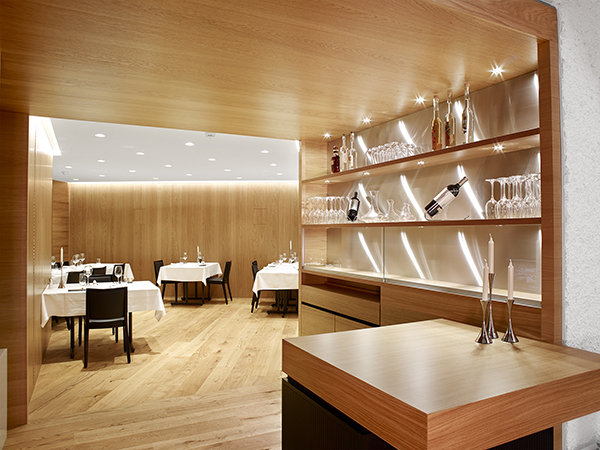 Die beim ersten Eingriff nur sachte angefassten Räume und Elemente werden umgebaut und mit dem bestehenden Konzept von Holz und Stein verschmolzen. Die Erweiterung um ein Gourmetstübli gehört dabei zum Kernstück des Eingriffs.