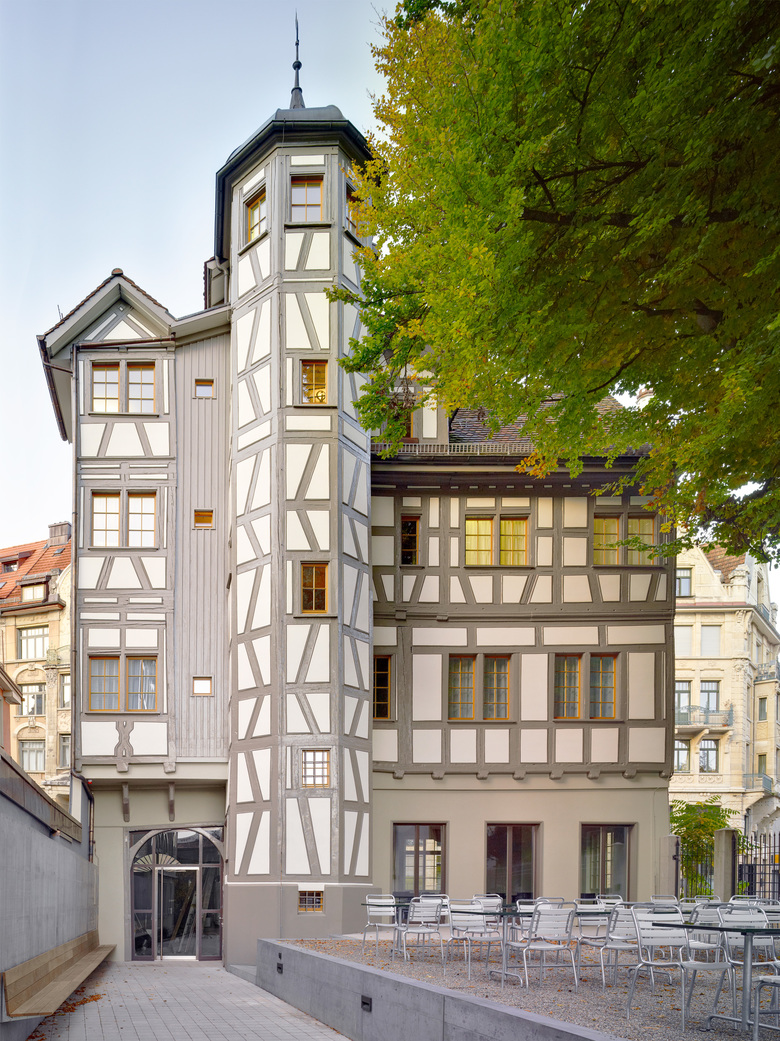Im Auftrag des Hochbauamtes des Kantons St. Gallen wurde das denkmalgeschützte Haus «Zur Hechlen» sanft saniert und durch punktuelle Eingriffe bereichert. Der wertvolle Riegelbau aus dem Jahr 1611 wird schon seit längerer Zeit als Freizeitheim zur Deckung des Raumbedarfs der benachbarten Kantonsschule genutzt. Diese Funktion als «Haus für Schüler» wurde durch die baulichen Massnahmen gestärkt und gleichzeitig eine Atmosphäre geschaffen, welche sich vom konventinellen Klassentrakt unterscheidet; Das erneuerte Kantiheim ist sowohl Teil der Kantonsschule am Burggraben, als auch Gegenwelt dazu. Die baulichen Veränderungen ermöglichten dabei eine angenehme Begegnungszone für Schüler, Lehrer und Gäste der Kantonsschule. Im Erdgeschoss bietet ein multifunktionaler Saal mit grosszügiger Öffnung zum Aussensitzplatz Möglichkeiten für Veranstaltungen, Ausstellungen und gemütliches Beisammensein. Die Räume in den Obergeschossen bilden einen angemessen gestalteten Rahmen für die beherbergten Nutzungen wie Instrumentalunterricht, Schülerzeitungsredaktion, Raum der Stille und Mädchenstoa.