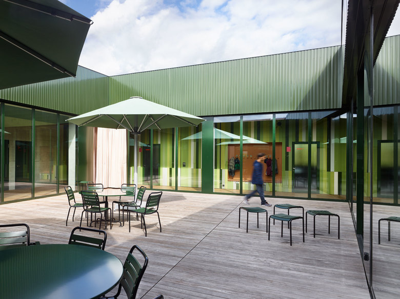 Das Quartier in Kleindöttigen ist geprägt durch eine heterogene Bebauung, bestehend aus mehrgeschossigen Wohnbauten und 1- bis 2-geschossige Infrastrukturbauten. Der Neubau steht am Rande dieses Gevierts, markiert den Übergang zur Naherholungszone entlang der Aare und gliedert sich als Werk und Arbeitsort in die Struktur der flachen Infrastrukturbauten ein. Sowohl die Proportionierung als auch der Ausdruck des Neubaus schafft einen Kontrapunkt zum bestehenden Wohnheim und will den Ortswechsel vom Wohnen zum Arbeiten als Bereicherung des Alltags erlebbar machen.