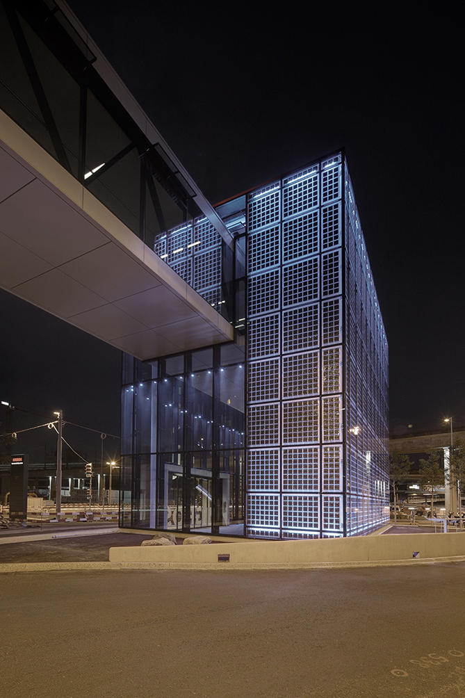 Der grösste Schweizer Detailhändler hat den Zürcher Hauptsitz renoviert und setzt mit seinem prominenten Standort ein Zeichen. Entstanden ist ein Stahl- und Glasbau, welcher mit eigens dafür entwickelten LED RGB Leuchten in jeder Farbe strahlen kann. Ein weiterer Turm wurde zur Erschliessung des Parkdecks gebaut, beide werden über eine Lichtsteuerung gemeinsam gesteuert.