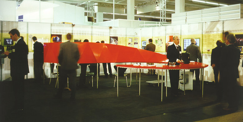 Die räumliche Figur ist das zentrale Motiv des Messestandes und macht den