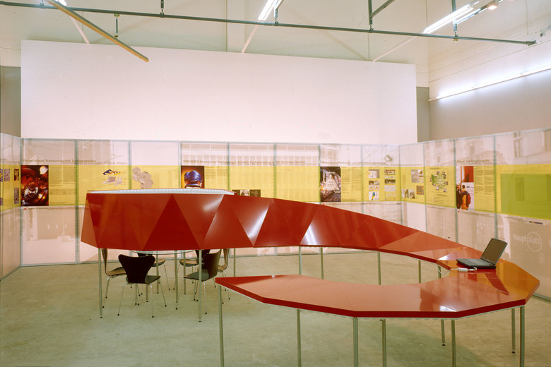 Die räumliche Figur S_move ist gleichzeitig Infotheke und ermöglicht einen abgeschirmten Besprechungsbereich.