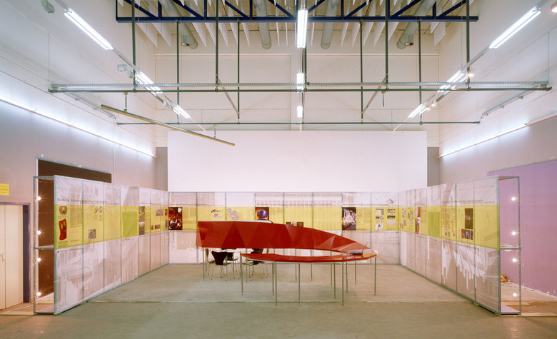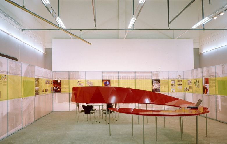 Das Regalsystem ist über den Servicegang von hinten zugänglich und kann Monitore, Computer und Exponate aufnehmen. In die backlight-Folien können je nach Anforderung und Größe der Exponate, Monitore etc. Öffnungen geschnitten werden. Die Präsentationswände können im Raster von 1.0 m nahezu beliebig angeordnet werden und gehen dadurch auf unterschiedliche Raumsituationen und Größen ein. Die backlight-Bahnen werden mittels Klettverschlüsse am Regal befestigt.