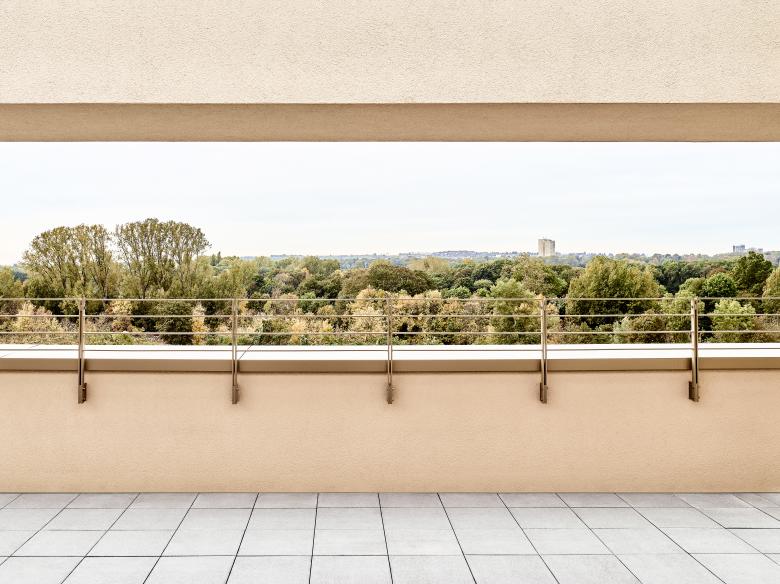 Sämtliche Wohnräume und Freisitze sind nach Süden und Südwesten in Richtung des Flusses orientiert. Den Erdgeschosswohnungen sind private Gärten zugeordnet.